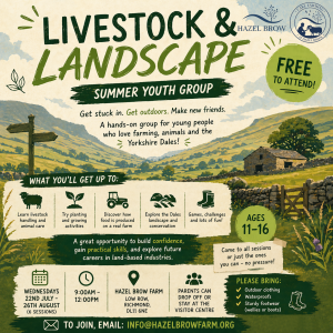 Come and join us at Hazel Brow Farm for our Livestock & Landscape sessions — a relaxed, hands-on group for young people who love farming, animals, the outdoors, or just want to try something a bit different.